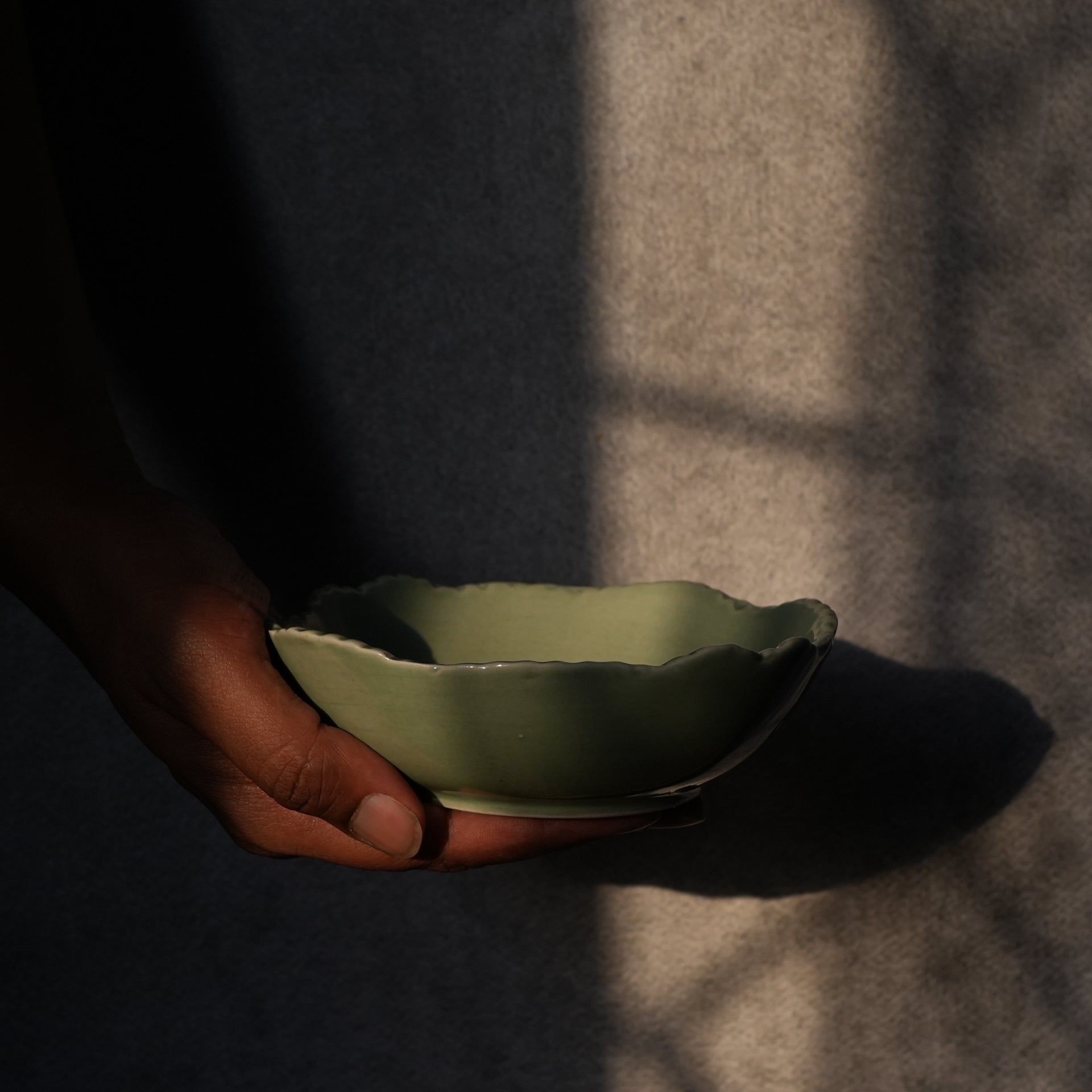 Generous size of 1000 ml for serving main dishes, salads, or sides. Smooth, clean edges with a subtle line-edged rim. Handcrafted with an earthy green finish for a natural touch. Ideal for family-style meals or gatherings. Durable and easy to maintain.