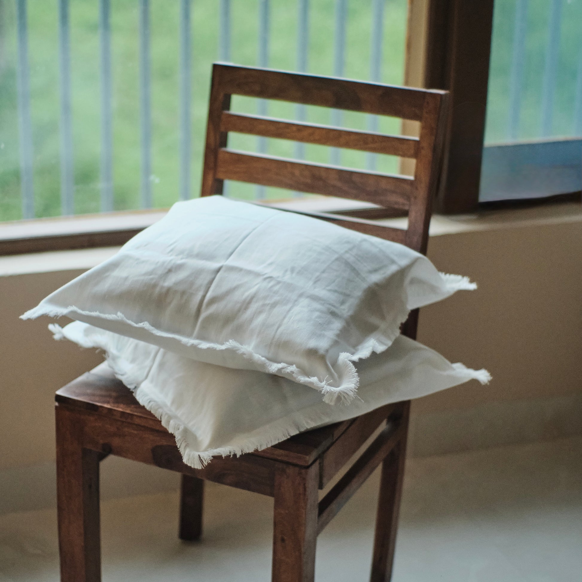 Bring natural elegance and texture to your space with the Sukham Hemp Cushion Covers, designed with raw edges for a r...