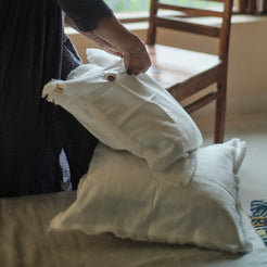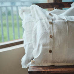 Elevate your space with the Sukham Linen Cushion Covers, featuring raw edges for a chic, rustic finish. Crafted from 100% pure European Flax Linen, these cushion covers are soft, breathable, and timelessly elegant, adding warmth and natural beauty to any room.